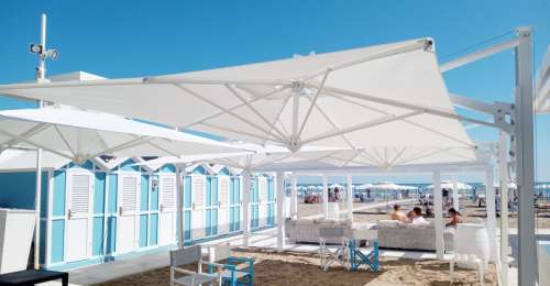 • Tende ed ombrelloni con ampi spazi (superiori alla media del settore): fino a 3 lettini sotto tutte le tende! Grandi spazi tra gli ombrelloni per una maggiore indipendenza